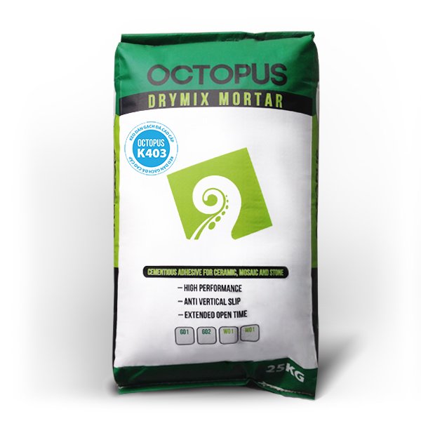 Keo dán gạch K403 là keo dán gạch một thành phần, gốc Xi măng – Polymer cải tiến trộn sẵn. Tương thích với tiêu chuẩn C2 của TCVN 7899-1:2008 (hoặc ISO 13007-1:2004).